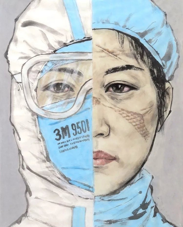 而口罩護(hù)目鏡背后的面龐,